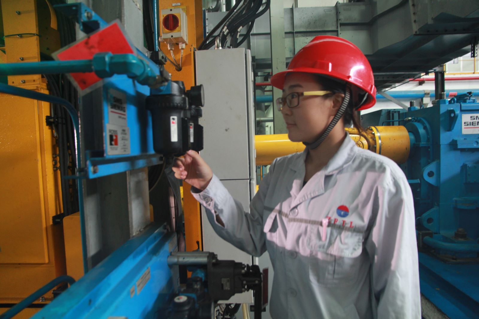 善學者能,多能者成。軋機設(shè)備調(diào)試由ABB公司人員主導(dǎo),但張潔卻不愿當看客,她主動參與進去,和男同事們一道深入現(xiàn)場,從最基本的泵站沖洗線路改造及現(xiàn)場I/O點校對做起,認真配合ABB公司調(diào)試人員做好設(shè)備的調(diào)整和參數(shù)的優(yōu)化工作。調(diào)試期間,每天在現(xiàn)場蹲點調(diào)試,已成為她的“規(guī)定動作”,她與ABB公司調(diào)試人員溝通交流,掌握第一手資料;堅持“最早來、最晚走”是她的工作常態(tài),為了不錯過調(diào)試中的任何學習機會,她把自己的婚期一推再推。
