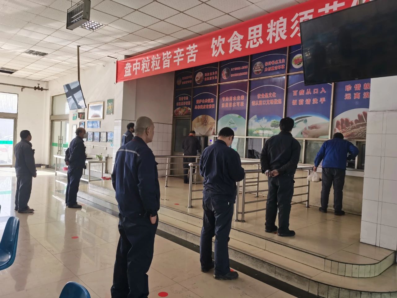 中孚炭素公司員工在食堂排隊就餐