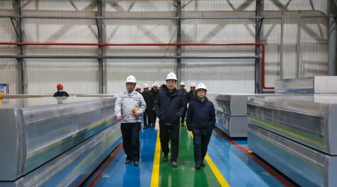在豫聯集團高精鋁生產現場,考察團一行參觀了鋁精深加工生產線,了解了生產流程,對企業鋁精深加工的裝備水平、技術研發、產品質量、市場應用等情況表示肯定。