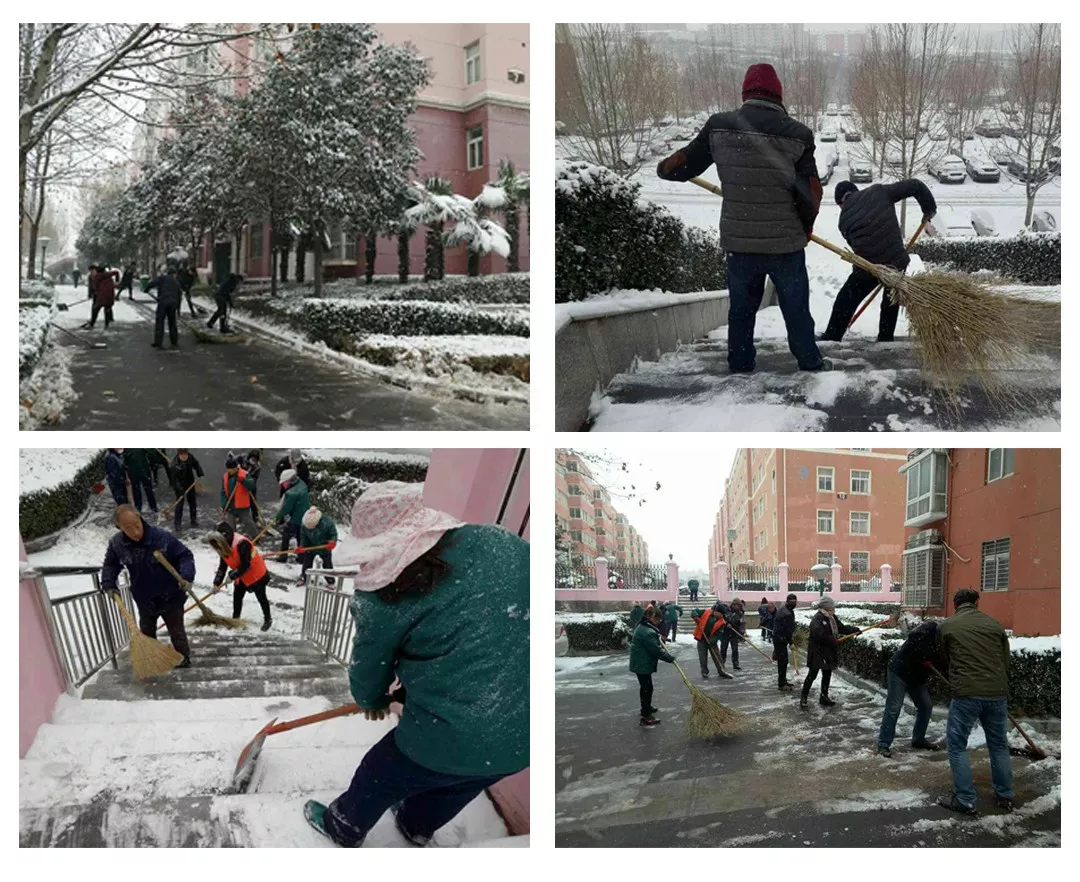 4日早上,園區(qū)物業(yè)公司全員出動(dòng),全力清掃積雪。由于雪一直不停地下,剛剛掃過的路面很快又被雪覆蓋,大家反復(fù)清掃,確保道路暢通。