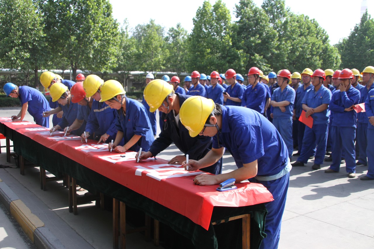 6月4日上午,中孚炭素公司舉行“安全生產月”活動啟動儀式,各部門負責人、區域安全員、員工代表共60余人依次在“防風險、除隱患、遏事故”的安全主題橫幅上鄭重簽名,并莊嚴地宣讀了安全誓詞。活動現場,公司生產主管經理翟紅衛強調:“安全重于泰山!強化員工安全意識,提高全員安全素質,是保證公司生產經營長期安全穩定的必要條件。希望通過安全活動的開展,深化全員對‘安全生產月’活動主題的認識,推動公司安全生產工作再上臺階,進一步營造‘人人懂安全、人人管安全’的良好氛圍,共同創造安全有序和諧的生產生活環境。”