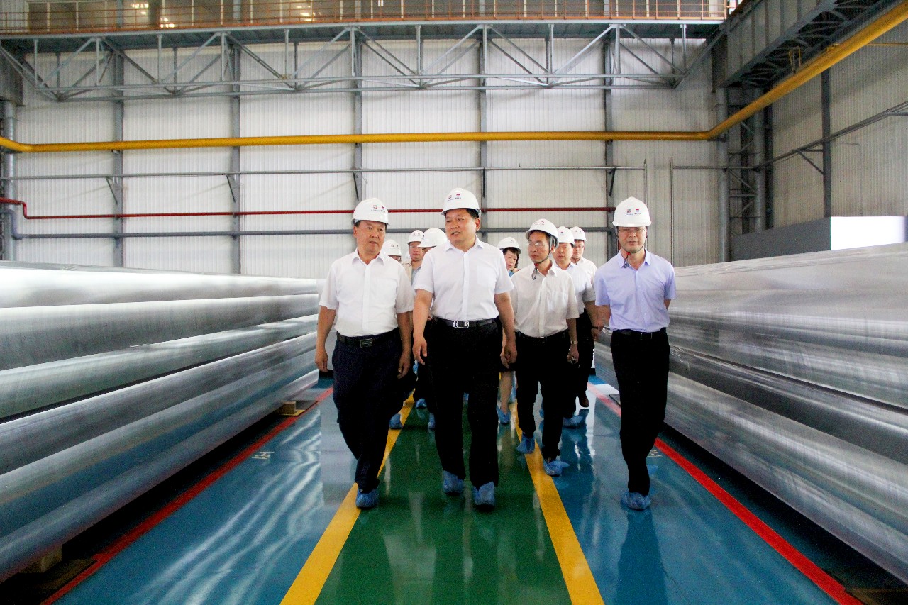 當天上午,袁市長一行首先深入核心轉型升級高精鋁項目生產現場進行實地調研。雖然天氣炎熱,但高精鋁干部員工精神抖擻,堅守崗位,緊張有序地從事各項生產,現場處處呈現出熱火朝天的動人場面。從熔鑄到熱軋再到冷軋,袁市長邊走邊看,對整體裝備、生產工藝、產品質量、市場開發、盈利能力等進行詳細了解,對公司員工立足崗位敬業奉獻的工匠精神表示贊揚,對企業轉型升級取得的顯著成績給予充分肯定。隨后,袁市長一行又先后到電解鋁產能轉移拆遷現場、電力生產集控室進行了實地察看,對企業整體生產經營情況進行了解。