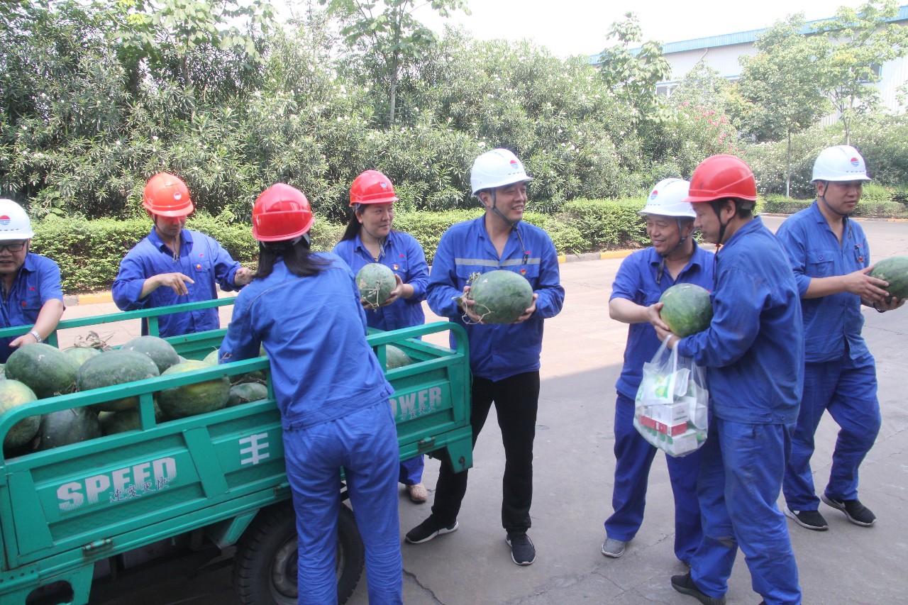 夏季高溫酷熱,為確保員工身體健康,7月3日上午,中孚炭素公司組織人員將3000斤西瓜以及藿香正氣水、人丹等防暑降溫物品送到了一線崗位員工手中。