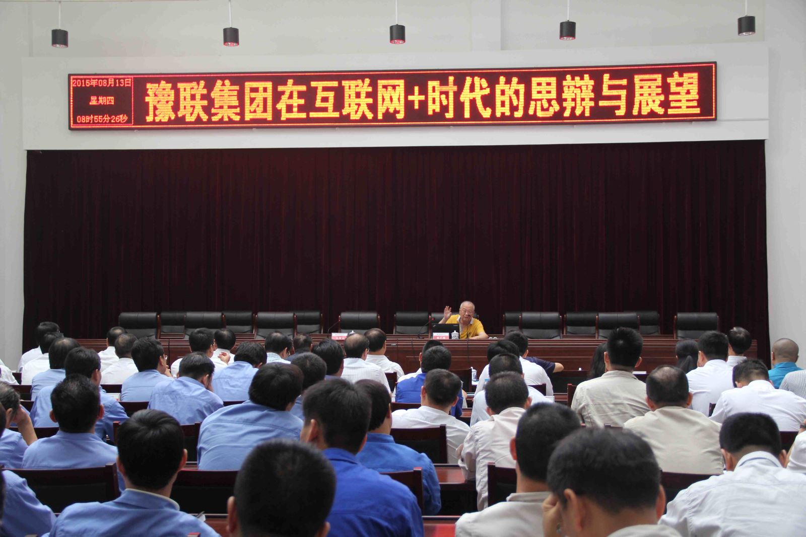 為普及互聯網相關知識,助推集團公司由傳統產業向互聯網領域加快轉型,8月13日上午,集團公司在總部二樓會議室舉行了“互聯網+”專題講座,特邀我國管理咨詢與信息化專家、兮易控股集團董事長陳廣乾先生作了題為《豫聯集團在“互聯網+”時代的思辯與展望》的專題報告。集團公司領導班子成員、各單位高管人員、中基層管理人員及員工代表260余人參加了會議。會議由黨委書記、副董事長馬路平主持。